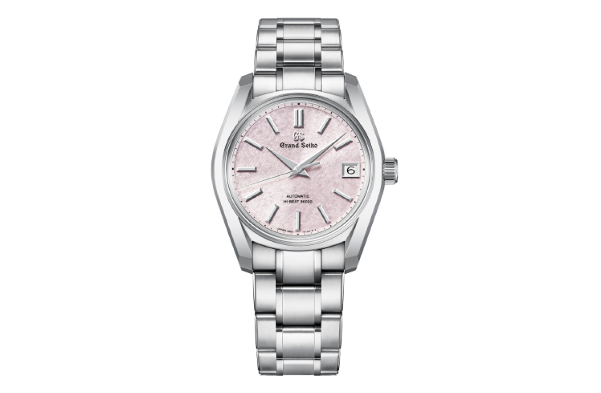 帶有精緻紋理的錶盤,揉雜著柔和的淺灰色、粉紅色,藉此重現櫻隱景象。面盤顏色會隨著角度和光線而變化,展現柔嫩又令人入迷的特質。錶徑38mm的SBGH341,厚度12.9mm,尺寸適中。內外雙弧面的箱型藍寶石水晶鏡面讓光線得以從各個角度照進錶面,令「櫻隱」的細緻紋理之美更顯清晰。錶殼與鍊帶採白鈦合金打造,具有比普通鈦金屬更抗刮擦的優越特性。錶殼造型體現出62GS圓潤、稜角較少的特色。搭載9S85自動上鍊機芯,這是一枚每秒振動10次的高振頻機芯,靜置時的精準度為日差-3~+5秒,動力儲存55小時,橋板飾以精緻波紋。