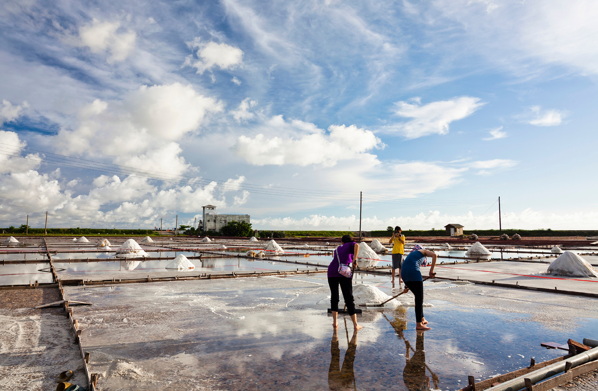 來到這裡除了欣賞鹽田風光、品嚐以天日鹽製成的冰淇淋等特產、選購各式各樣的鹽文創商品之外,還能走進鹽灘池,站在歷史悠久的瓦盤上,親自體驗傳統曬鹽、挑鹽和收鹽的樂趣,在台灣知名的製鹽歷史地,與當地居民重溫生活的記憶。