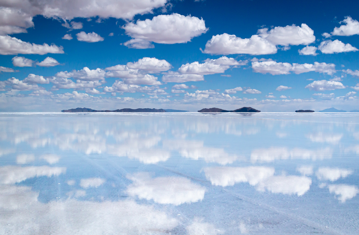 這面延伸了數百公里的「鏡子」,大概是全世界最壯觀的鏡面景觀,清晰倒映出天空的景色,在地表上形成了一個真實與虛幻並存的世界,彷彿平行宇宙,讓人分不清天地之間的界線,感覺就像置身於奇幻電影中的場景,令人震撼。如果這樣的美還不夠讓人屏息,偶爾意外現身的粉紅色火烈鳥,夜幕低垂時同時在天空與鹽沼中閃耀的星星⋯⋯讓一切更是超現實!