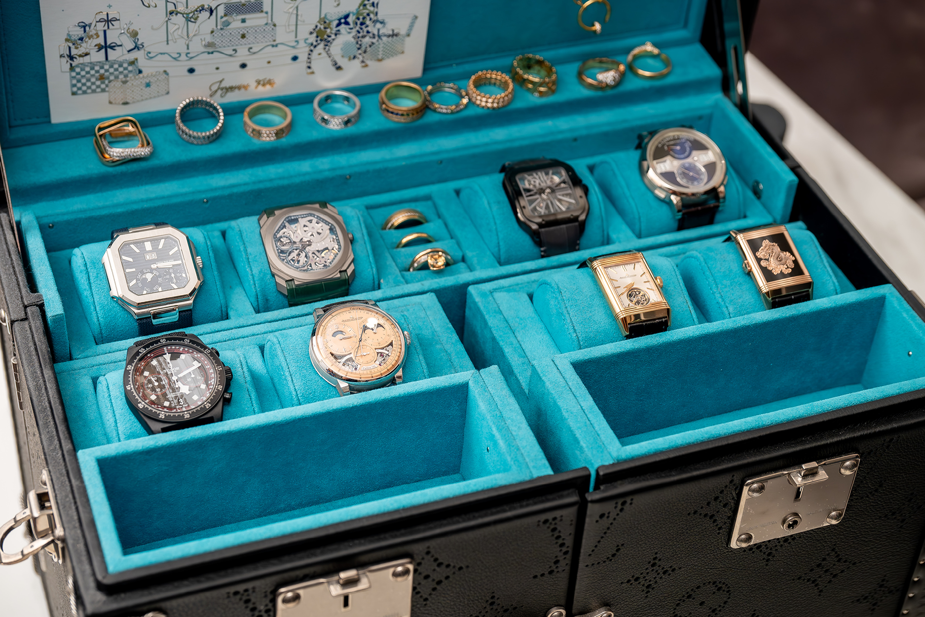 除此之外,還有聖母遊行以及牲畜市集與朝聖者營地等場景,這些磁磚畫都是以藍色顏料彩繪於白色磁磚上,讓人彷彿置身於一片藍色的大海中。至於出現在它們上方的飾帶,則彩繪了不同地區的鄉村風景,以及歷史上人們使用過的各種交通工具,同時點綴著藍、棕、黃色磁磚外框。